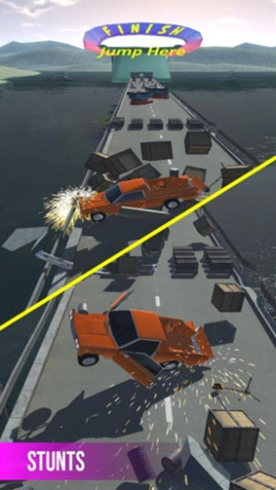 看着你的汽车在每一个环节都上演疯狂又震撼的特技。瞧瞧那些最惊险的碰撞和飞跃,还能分享给朋友。把发动机的飞行潜能拉满,让它冲上最高处。你开得越快,飞得就越远,被撞毁的东西也越多!