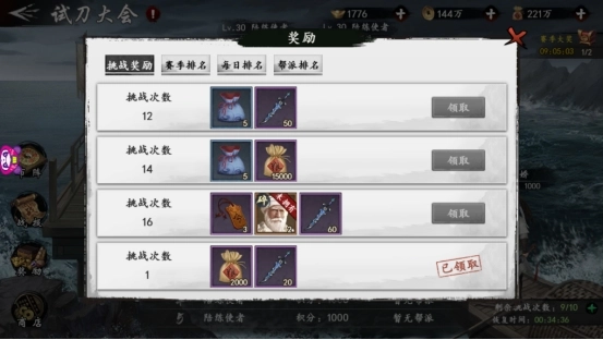 试刀大会的奖励也是多种多样的。每赛季在试刀大会中挑战获得一定次数的胜利后都会获得保底奖励。只要参与就有道具拿。当挑战满16次,还会获得史诗侠客天竺僧碎片。只要坚持挑战,集齐碎片不是梦。