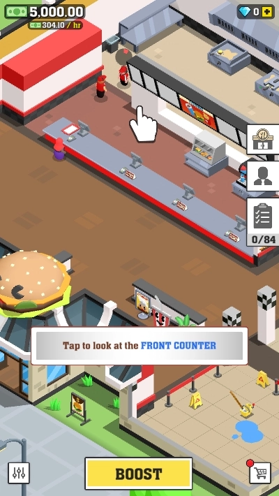 2、欧美游戏画面呈现,放置点击管理着自己美食街的经营方案策略。