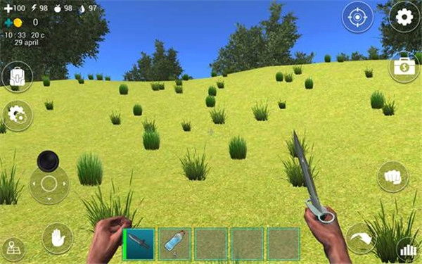 我们顺着海岸线往水塔的方向走,途中能用匕首对准树干,接着点击右边的“拳头”攻击按钮,就能得到木头,这可是后期生存必不可少的材料。