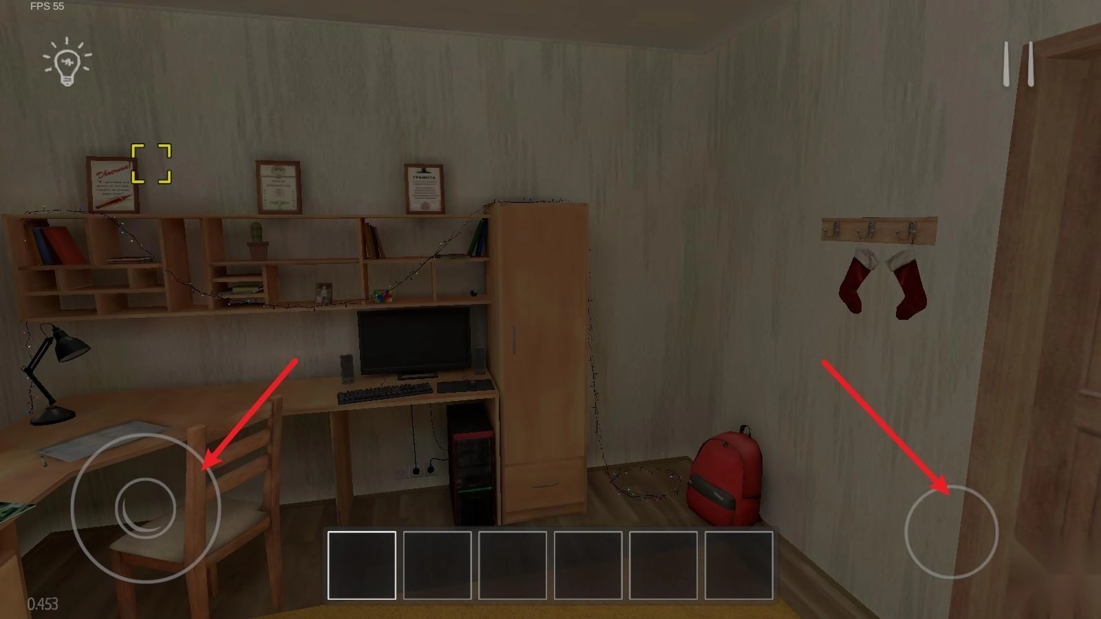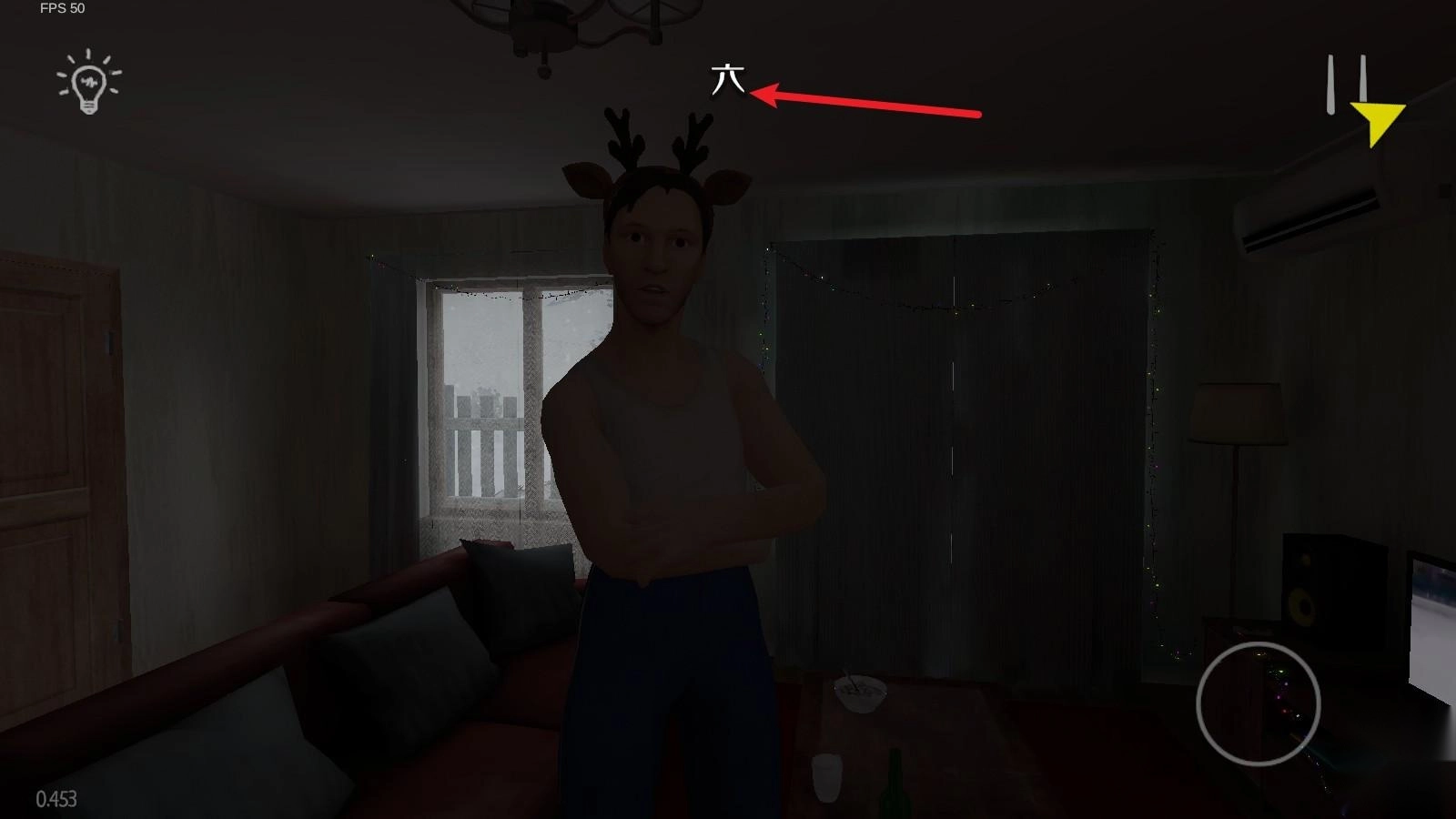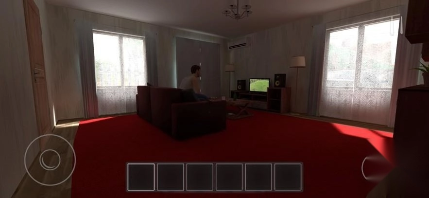 1、进入游戏后,你会出现在自己的房间当中,左侧摇杆可以控制你移动,右侧按钮能够让你起立和下蹲。