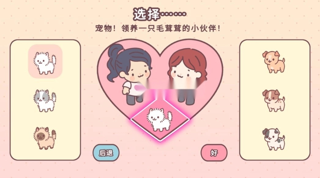 这是一款清新治愈的手机模拟装扮游戏,采用日式2D手绘风格,角色、物品与场景都以细腻的笔触描绘,整体氛围舒适温馨,深受玩家喜爱。游戏以二人世界的日常家居生活为背景,由一对同居角色和一只宠物狗构成核心世界,为玩家提供了角色装扮与居家装扮两条并行的成长路径,丰富的设定让游戏体验更加多元。玩家既可以通过发型、肤色、上衣、裤子、帽子、饰品等多种元素,自由搭配角色的造型与服饰;也能利用床铺、地毯、墙饰、沙发、茶几、地砖等家居摆件,亲手打造一个专属于自己的温馨小家。