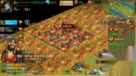 攻破洛阳,占领潼关以及打下长安旁冲车后董卓会跑出来,把他击败,然后攻占长安触发该剧情,一把大火之后一切化为乌有