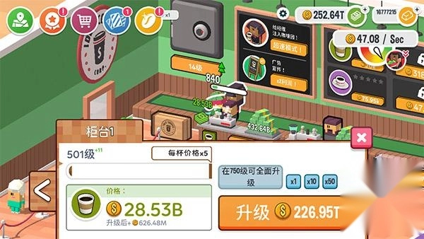1、开设并升级柜台:通过开设柜台并选择咖啡品类,提升柜台等级可提高咖啡售价,达到特定等级还能优化柜台品质,显著增强经营效益。