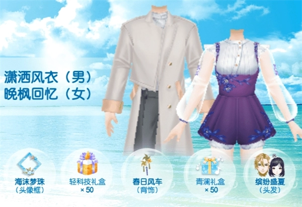 参与赶海拾珠活动即可获得头像框海沫梦珠,活动期间掉落的猫猫冰棍可在清凉小铺兑换背饰春日风车、套装潇洒风衣(男)、晚枫回忆(女)、头发-缤纷夏日、青澜礼盒*50.轻科技礼盒*50