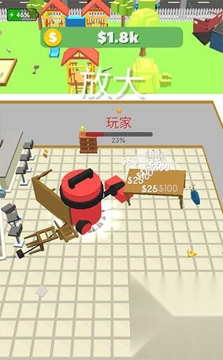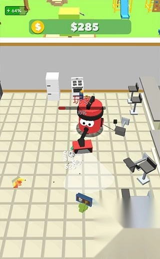 吸尘器大作战是一款画风简洁、玩法有趣的休闲游戏。玩家在游戏中扮演吸尘器机器人,通过吸入各类小物件来累积能量并让自己变大。随着游戏推进,体型会越来越大,能吸入的物品也更丰富,到最后甚至可以把整栋房子和汽车都吸进肚中!不过要注意,其他玩家操控的吸尘器如果体型比你大,也会把你吸进去当作“养料”,这很考验玩家的策略思维和反应能力。感兴趣的小伙伴可以来体验一下!