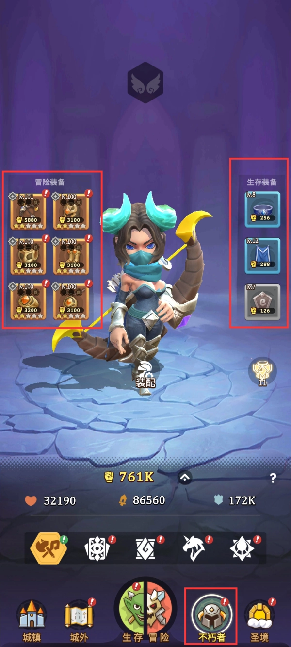 另外,角色自带装备效果进入冒险地图,如若遇到卡关等问题,可以通过挂机积攒资源、强化冒险装备、镶嵌宝石、使用天使牌等方式提升战力后,再进行挑战的通关率更高哦~