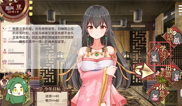 《刘禅育成计划》是一款以三国蜀汉为背景的君主养成策略游戏,核心特色在于反套路的叙事风格、多维度的角色养成系统以及高自由度的剧情分支设计,既保留了历史改编的趣味性,又具备策略玩法的深度。游戏以“扶不起的阿斗”刘禅为主角,玩家将化身导师或诸葛亮,从刘备托孤这一关键节点开始培育刘禅,不仅能将他塑造为励精图治的明君或雄才大略的霸主,还能触发诸如女帝线等特殊结局。
