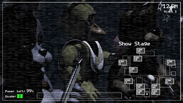 2、通过闭路监视器来观察玩具熊们的活动路线,控制更多的音乐和来限制玩具熊的活动。