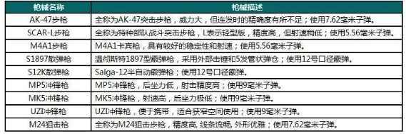 1、涵盖步枪冲锋枪狙击枪霰弹枪等多种常规枪械,支持配件自由搭配提升性能。