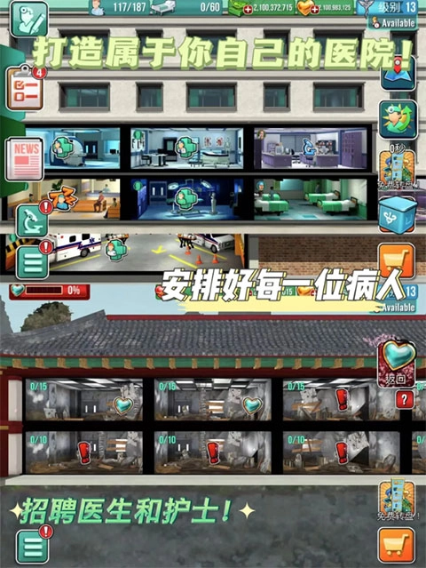 3、能够以有趣的方式进行各种手术,不断建立自己的医院科室,定制各种医疗中心,升级医院。
