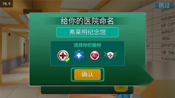 7、在剧情过后,你可以开专属你的医院,在这之前你需要给你的医院命名以及选择徽章。