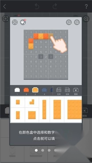 2. 在创作的时候没有随意的翻转,用不同的角度见证了木块画所带来的独特视觉。这个游戏特别简单,根据数字填满相应的方块。
