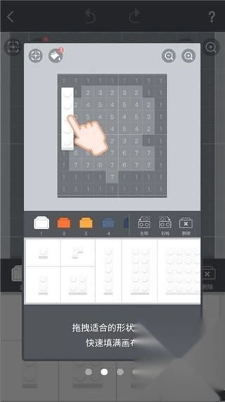 根据图例里标注的数字,像1、2、3、4这些,挑选对应数字的色块来填充。每个色块的样式也挺丰富的,1、2、4的组合形式比较多,能按照玩家不同的想法来填充,特别新颖好玩。