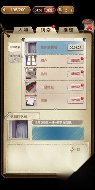 3、接着在线索界面中对收集到的线索进行分析。