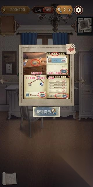 2、游戏的主要过程就是在场景中探索和收集有用的线索。