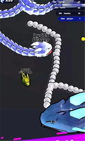 在游戏里,玩家以一条小蛇为起点,通过吞食场景里的光点以及其他体型更娇小的蛇来实现快速成长。和某些单纯依赖“围堵猎杀”的传统玩法有所区别,蛇冲突融入了类似等级的对抗规则。当两条蛇碰面时,等级更高的那一方会处于有利地位,能够直接将对手吞噬。这样的设定促使玩家主动发起攻击,让游戏的对抗性更为突出,节奏也变得更快。