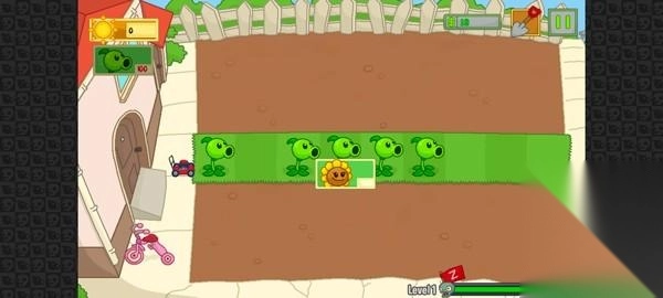 5、这里以第一关为例,玩家需通过收集阳光种植植物来防御进攻的僵尸;