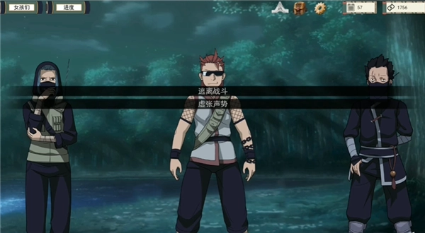 接下来需要去训练场思考下一步计划,会遇上一忍者,这里需要玩家虚张声势,再去与他们交涉。交涉过后制造分身,继续对话可以躲开,用体术就能够解决事情。
