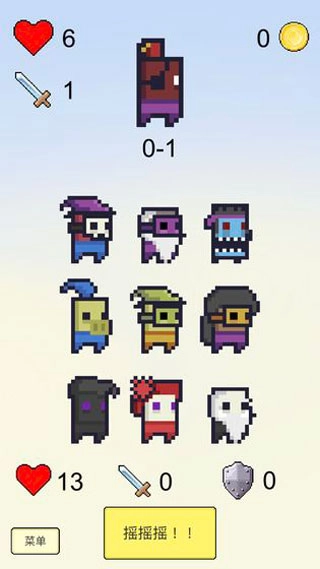 2、在游戏中,玩家的角色属性由每次摇动时英雄的攻击和防御数值决定。