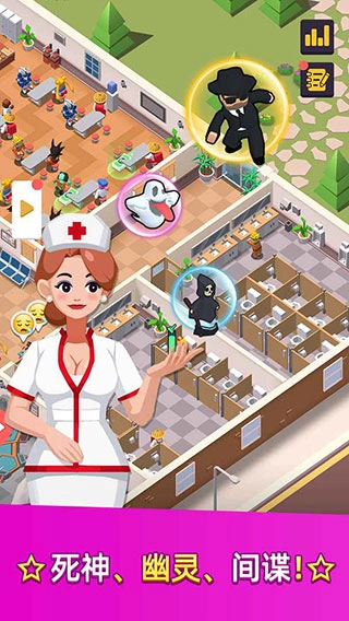 4. 这款以轻松安置为主题的管理游戏经营着自己的医院,招募了大量的员工。