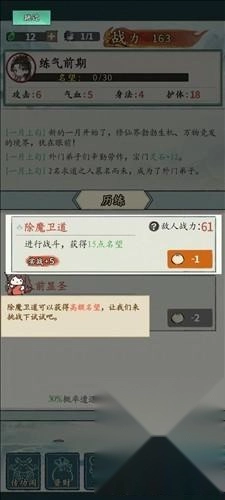 4、最上面是玩家的境界,虽然没有灵根,但是只要获得足够的名望,就可以将其转化为修为能量;