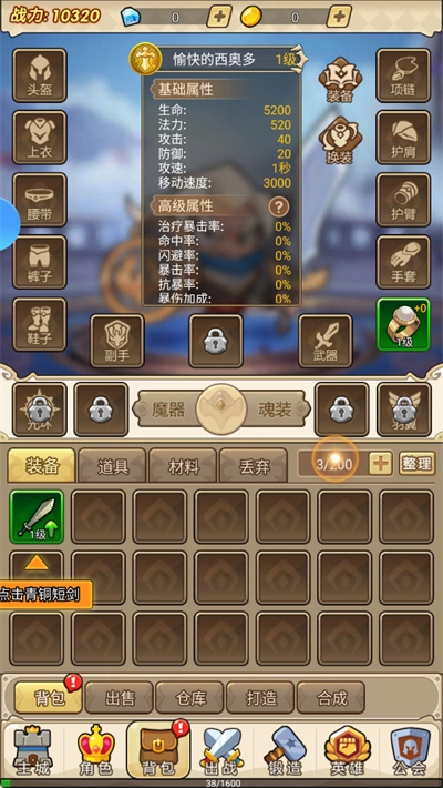 在背包中可以穿戴更换装备以及查看你的属性