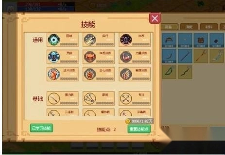 3、点击角色属性下方的技能可以学习不同的招式,每次学习会消耗一点技能点和不同数量的金币。