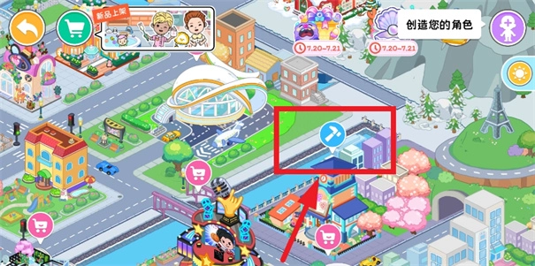 1、首先进入游戏,右下角找到美容店;