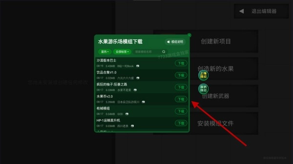 2、之后会弹出模组列表,里面的模组特别多,玩家可以选择合适的,接着点击最右边的。