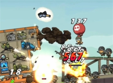 游戏采用的是关卡外加肉鸽。游戏里面我们每小米一定的敌人便会出现3选1的技能,前期建议玩家们可以选择增加重炮范围的BUFF,因为前期我们使用最多的武器就是重炮,这个武器的的伤害很高,如果增加了范围那么效果将会更好。