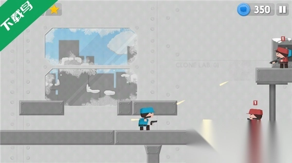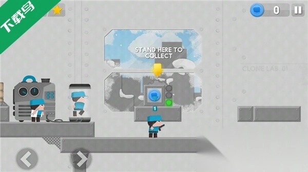 4、博士会复制克隆出你的小兵,玩家可以操控其中一个单位;左侧虚拟摇杆控制移动方向,右侧按钮控制射击与跳跃;