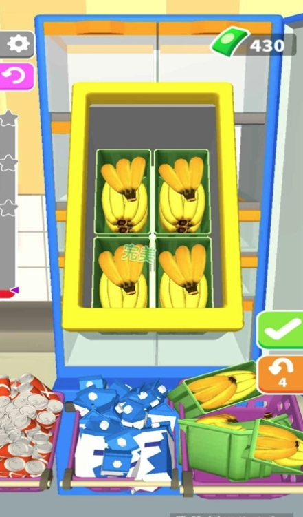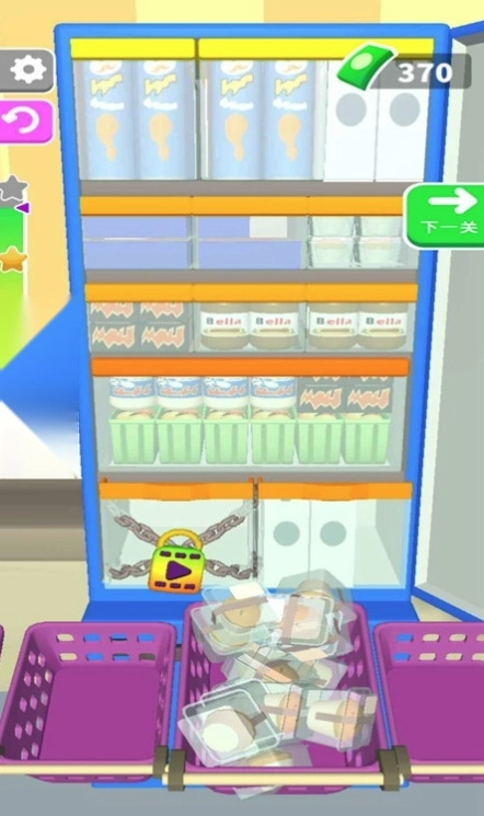 2、来,试着把冰箱装满。在游戏中,你可以看到关卡中提供给你的各种道具。