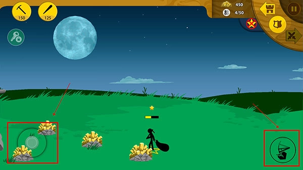 4、你也可以自己的挖这样就不用使用到金币了,点击角色过后就会出现操作键,左边的摇杆是控制角色的移动而右边的是挖矿键;