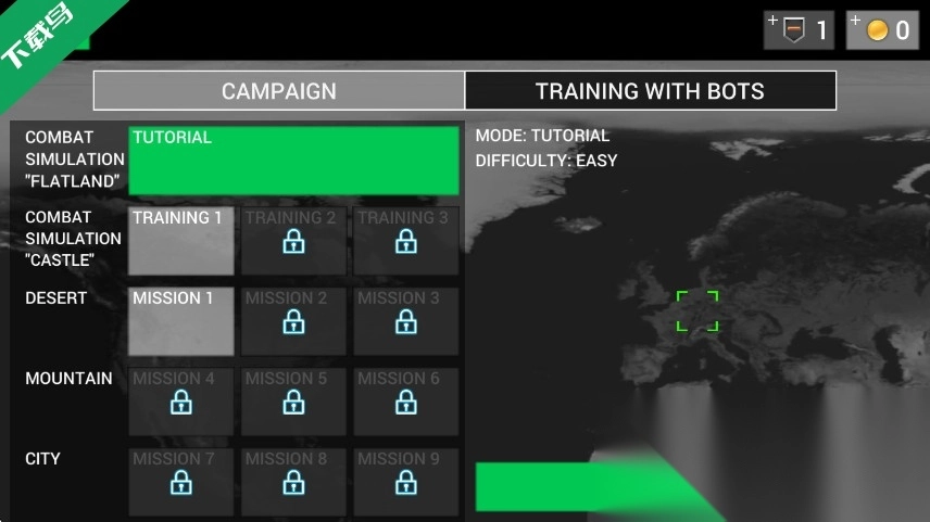 2、在单人模式里,挑选想要挑战的关卡,点击右下角START开始,这里以TRAINING 1为例;