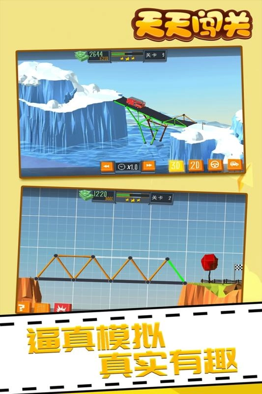 《天天闯关》是一款充满创意的桥梁建造模拟游戏,为玩家提供了丰富的建筑材料选择空间。从经典的木材、混凝土,到现代感的钢铁、缆线,每种材料都具备独特的物理属性与成本差异。游戏设有明确的预算限制机制,玩家需在有限资金内合理调配材料,既要确保桥梁的承重性能,又需兼顾成本效益。值得一提的是,游戏鼓励玩家释放想象力,打破常规思路,打造出各种脑洞大开的创意桥梁设计。通过不断尝试与优化,玩家不仅能提升工程规划能力,还能逐步形成属于自己的独特建造风格。