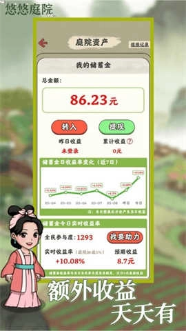 悠悠庭院并非普通的种田游戏,它凭借细腻的手绘卡通画风、沉浸式的舒缓背景音乐,以及真实可感的四季变化,为你打开一扇通往理想生活的木栅门。在这里,你身兼多职:既是庄园的主人、细致的园艺师、富有创意的活动策划人,也是游客眼中的“梦想缔造者”——从一片荒地开始开垦,亲手种下当季的作物,搭建古色古香的凉亭或是充满现代感的咖啡角,策划与节气相关的市集活动,还能和NPC展开互动剧情……每一次经营操作都能得到即时反馈,每一处场景布置都能打造出独一无二的美学风格。更让人惊喜的是,种花养草不仅能让庭院充满生机,还能领取红包、兑换现金、获取收益,让休闲时光真正“有看得见的回报”。