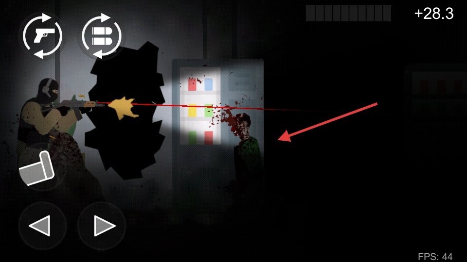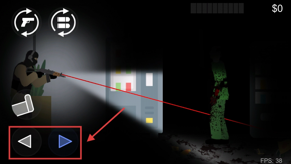 3、通过左下角左右移动按钮调整站位,躲避僵尸或优化射击角度。