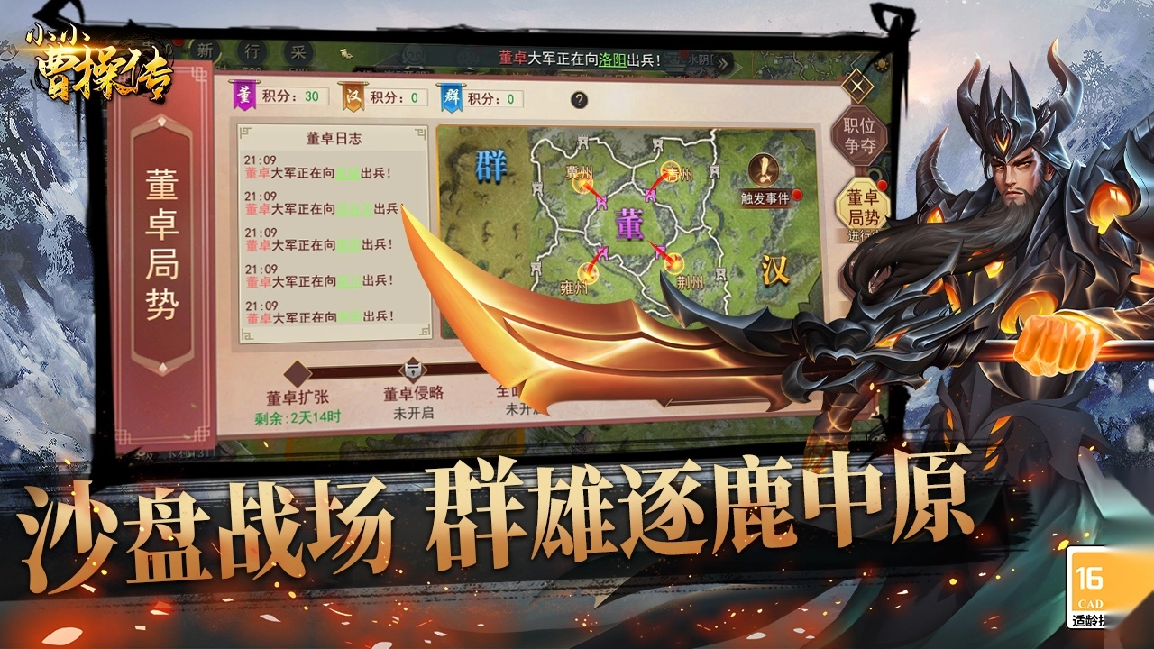 《小小曹操传》是一款趣味十足的SLG游戏,无论是日常副本挑战、便捷的快速扫荡,还是各类轻松休闲的玩法,都能让玩家无需过度投入时间与金钱即可收获乐趣。游戏中还有丰富的自由探险环节,玩家可以搜寻宝箱、收集资源,逐步开拓疆土、发展势力。