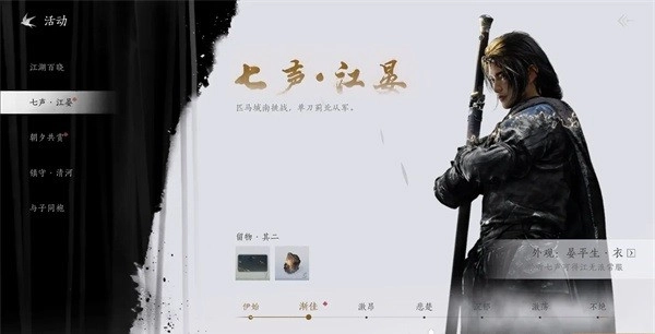 2、七声-江晏,相当于七天的签到活动,连续七天签到就可以领取江叔的时装。